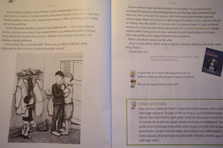 Nüüd jagas õpetaja jutukese "Tiigil" osadeks ning jaotas osad laste vahel ära. Igaüks harjutas oma osa lugemist ning seejärel lugesime terve pala koos läbi. Nagu arvata võib, oli ka selles loos juttu õhukesest jääst ning vettekukkumisest:
