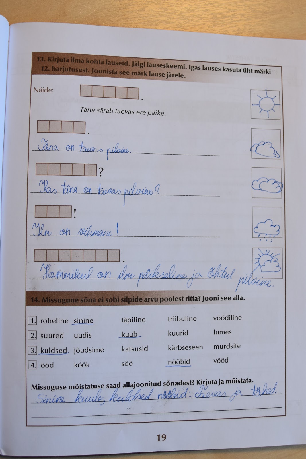 Tegime kuulamisülesannet "Ilmateade" ja kirjutasime lauseskeemide põhjal ilma kohta lauseid: