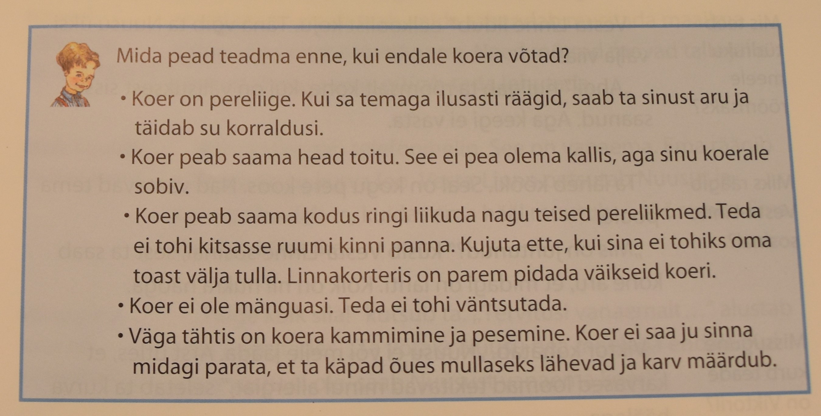 Nüüd lugesime vanast eesti keele õpikust lk 73 tähtsat juttu, mida peab teadma enne, kui endale koera võtad: