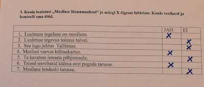 Nüüd kuulasime toredat luuletust "Mesilase lõunamaalend" ning täitsime luuletuse kohta tabelit:Harjutasime määrama sulghäälikute pikkusi: