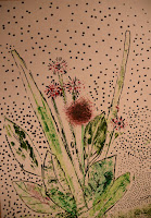 Üle-eelmises kunstitunnis oli õpetajal kaasa võetud kastitäis taimi. Kõigepealt valis igaüks endale taimed ja sobitas need kenasti paberile kompositsiooni. Nüüd asusime taimedega trükkima. Katsime taime guaśśvärviga ja asetasime paberile.