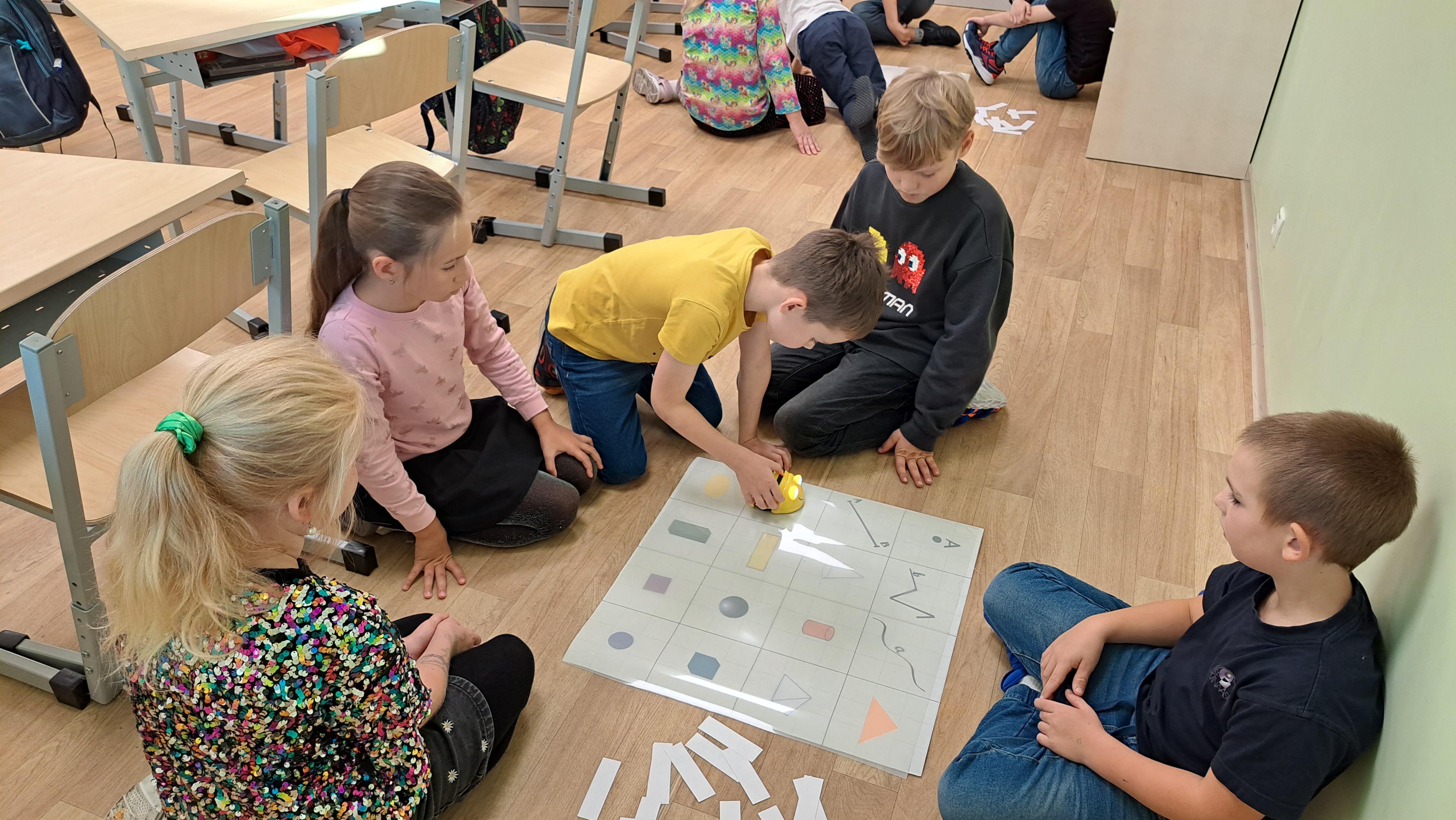 Nüüd oli vaja programmeerida Bee-Bot´i robotile sobiv teekond sedelil kirjeldatud kujundini jõudmiseks. Loomulikult tekitas see klassis parajalt elevust. Mäng õpetas lastele üksteisega arvestamist ja koostööoskust.